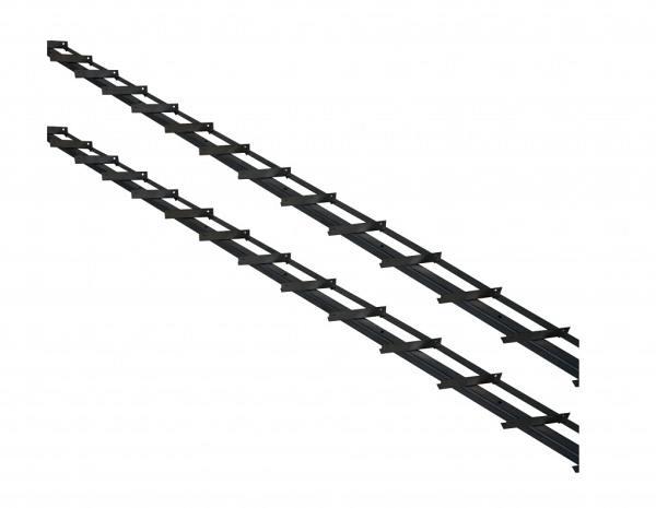 Het zelfbouwpakket bevat 2 stuks RVS rails (zwart gepoedercoat) van 165 cm lang, t.b.v. 14 planken. Exclusief planken en schroeven.