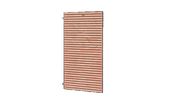 De douglas Elan tuindeur, op verstelbaar stalen frame, heeft een verfijnde vormgeving met aan 2 zijden latten met ca. 1 cm tussenruimte. Linksdraaiend.