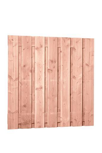Douglas fijnbezaagd plankenscherm, 180x180 cm. Planken 1,9x19,5 cm. 13 planken, 2 tussenplanken. Onbehandeld. Verticaal toepasbaar.