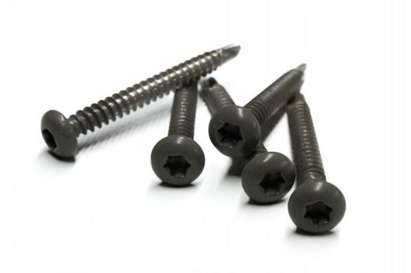 NewTechWood gekleurde wand/gevel-schroeven. De schroeven zijn gemaakt uit duurzaam RVS en zorgen voor bijna onzichtbare bevestiging van de eerste en laatste Castellation PRO wandprofielen. Kijk voor de montagehandleiding op newtechwood.nl
