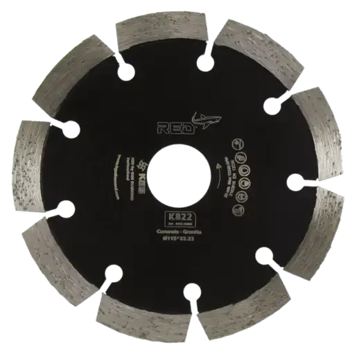 KGS RED™ K822 diamantzaag is of het zagen van beton, bakstenen, tegels, graniet, composiet en kalkzandsteen. Een universele zaag voor de bouw, zaagt snel en agressief. Geschikt voor droog gebruik op een haakse slijper. De zaag heeft een diameter van 115 mm met een asgat van 22,23 mm (7/8"). De KGS RED™ K822 diamantzaag heeft lasergelaste segmenten met een hoogte van 10 mm en een dikte van 2,5 mm. De zaag is ontworpen om stof en spaanders tijdens het zagen gemakkelijk te verwijderen.