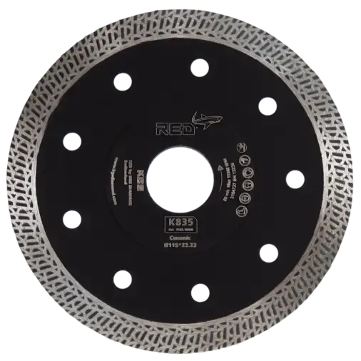 De zaag heeft een diameter van 115 mm met een asgat van 22,23 mm (7/8"). De KGS RED™ K835 diamantzaag heeft segmenten met een hoogte van 10 mm en een dikte van 1,4 mm met een zeer lange levensduur.