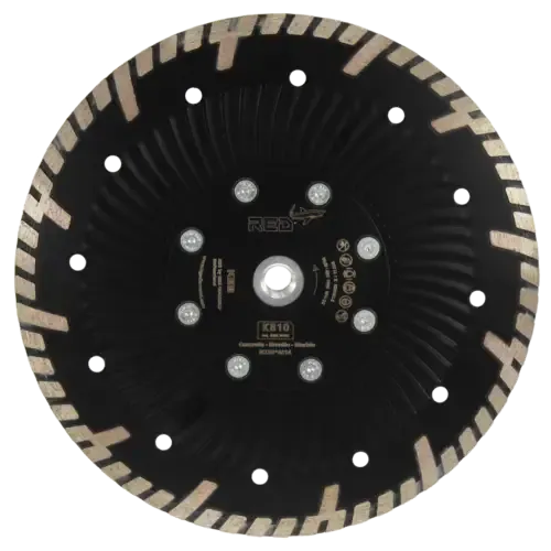 KGS RED™ K810 diamantzaag is een universele zaag met een lange levensduur. Uitstekend geschikt voor het zagen van harde materialen zoals graniet, beton en composiet, maar zaagt ook gemakkelijk zachtere materialen zoals marmer. De zaag heeft een gegolfde stalen kern voor meer stabiliteit bij het zagen. De doorlopende rand met turboprofiel zorgt voor een snelle en zuivere zaagsnede. Bovendien bevindt het diamant zich direct op de stalen kern, zodat de volledige segmenthoogte bruikbaar is. Geschikt voor droog gebruik op een haakse slijper. De zaag heeft een diameter van 230 mm en is voorzien van een M14 aansluiting. De M14-flens zorgt voor stabiliteit van de schijf, maakt schuren dicht bij een oppervlak mogelijk en maakt een snelle gereedschapswissel mogelijk. De KGS RED™ K810 diamantzaag heeft koelgaten en dieper liggende beschermingssegmenten met een hoogte van 8 mm en een dikte van 2,8 mm. Het zijbeleg beschermt de segmenten, zodat er vrij kan worden gezaagd en de zaag minder slijt.