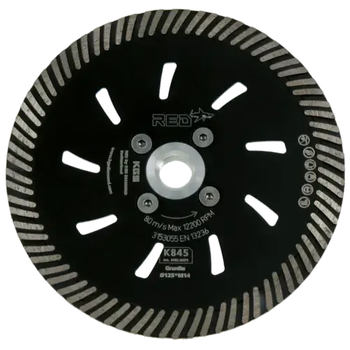 KGS RED™ K845 diamantzaag is het meest geschikt voor graniet en composiet, maar kan ook worden gebruikt voor het zagen van beton. Een agressieve zaag met een doorlopend turbo randprofiel voor een regelmatige en stabiele zaagsnede. Geschikt voor droog gebruik op een haakse slijper.