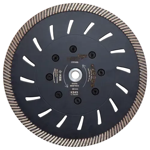 KGS RED™ K845 diamantzaag is het meest geschikt voor graniet en composiet, maar kan ook worden gebruikt voor het zagen van beton. Een agressieve zaag met een doorlopend turbo randprofiel voor een regelmatige en stabiele zaagsnede. Geschikt voor droog gebruik op een haakse slijper.