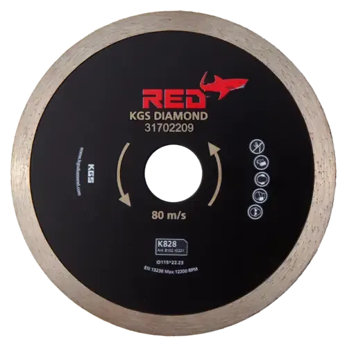 KGS RED™ K828 diamantzaag is uitstekend geschikt voor het zagen van keramiek en porselein. Een zaag met een doorlopende rand voor een smalle en precieze zaagsnede. Geschikt voor droog gebruik op een haakse slijper. De zaag heeft een diameter van 115 mm met een asgat van 22,23 mm (7/8"). De KGS RED™ K828 diamantzaag heeft segmenten met een hoogte van 7,5 mm en een dikte van 1,5 mm. Een zaag met een uitstekende levensduur.