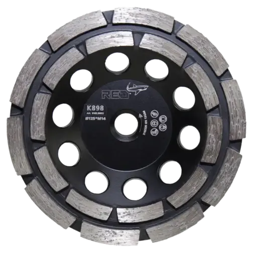 Een diamantkomschijf voor professioneel gebruik. De KGS RED™ K898 heeft een dubbele rij segmenten om eenvoudig en krachtig te kunnen schuren. Ideaal voor het schuren van oppervlakken, randen, hoeken, ongelijke oppervlakken en toplagen. Uitstekend geschikt voor professionele klussen waarbij veel materiaal moet worden verwijderd. Het resultaat van de KGS RED™ K898 is te vergelijken met een korrelgrootte van 50 of kleiner. De schijf heeft een diameter van 125 mm en is voorzien van een M14-adapter. De adapter maakt snel en eenvoudig wisselen van gereedschap mogelijk. Geschikt voor droog gebruik op een haakse slijper. Het aanbevolen toerental is 12200 rpm,