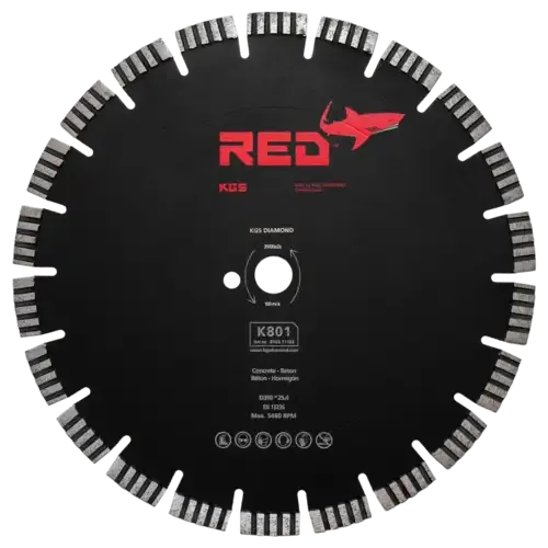 KGS RED™ K801 diamantzaag voor het zagen van beton, bakstenen en tegels. Een zaag met een extreem lange levensduur en superieure kwaliteit. Kan zowel droog als nat gebruikt worden.