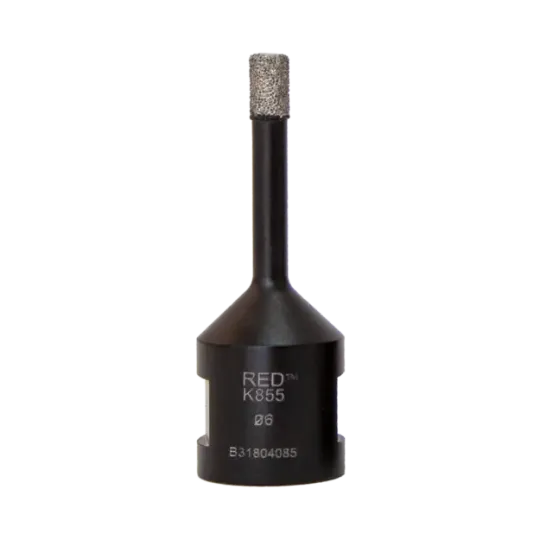 Sterke, vacuüm gesoldeerde diamantboor. Perfect voor het boren van gaten in keramiek, composiet en natuursteen. De boor heeft een lange levensduur. Aan de binnenkant is de boor voorzien van een wax/waslaag om wrijving te verminderen, dit zorgt voor extra koeling tijdens het boren. De KGS RED™ K855 boor heeft een M14 aansluiting, waardoor deze gemakkelijk op een haakse slijper te installeren is.