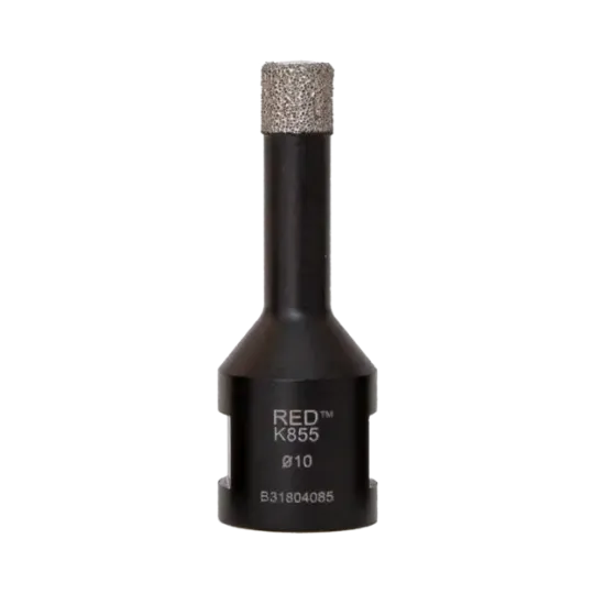 Sterke, vacuüm gesoldeerde diamantboor. Perfect voor het boren van gaten in keramiek, composiet en natuursteen. De boor heeft een lange levensduur. Aan de binnenkant is de boor voorzien van een wax/waslaag om wrijving te verminderen, dit zorgt voor extra koeling tijdens het boren. De KGS RED™ K855 boor heeft een M14 aansluiting, waardoor deze gemakkelijk op een haakse slijper te installeren is.