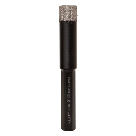 Sterke, vacuüm gesoldeerde diamantboor. Perfect voor het boren van gaten in keramiek, composiet en natuursteen. De boor heeft een lange levensduur. Aan de binnenkant is de boor voorzien van een wax/waslaag om wrijving te verminderen, dit zorgt voor extra koeling tijdens het boren. De KGS RED™ K856 boor heeft een zeshoekige aansluiting, waardoor deze gemakkelijk op een boormachine te installeren is.
