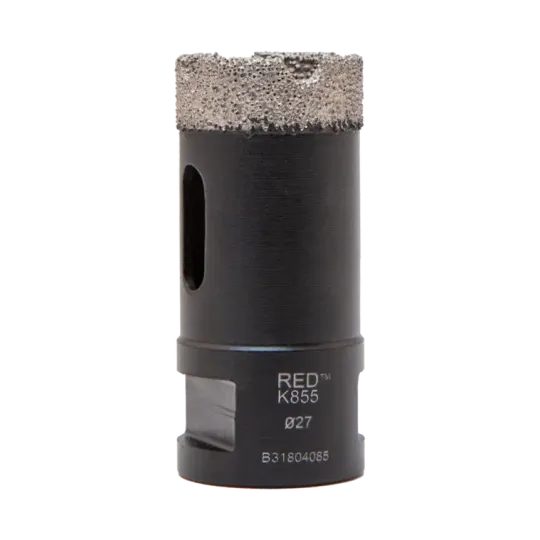 Sterke, vacuüm gesoldeerde diamantboor. Perfect voor het boren van gaten in keramiek, composiet en natuursteen. De boor heeft een lange levensduur en is voorzien van koelgaten. De KGS RED™ K855 boor heeft een M14 aansluiting, waardoor deze eenvoudig op een haakse slijper te installeren is.
