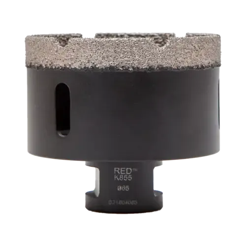 Sterke, vacuüm gesoldeerde diamantboor. Perfect voor het boren van gaten in keramiek, composiet en natuursteen. De boor heeft een lange levensduur en is voorzien van koelgaten. De KGS RED™ K855 boor heeft een M14 aansluiting, waardoor deze eenvoudig op een haakse slijper te installeren is.