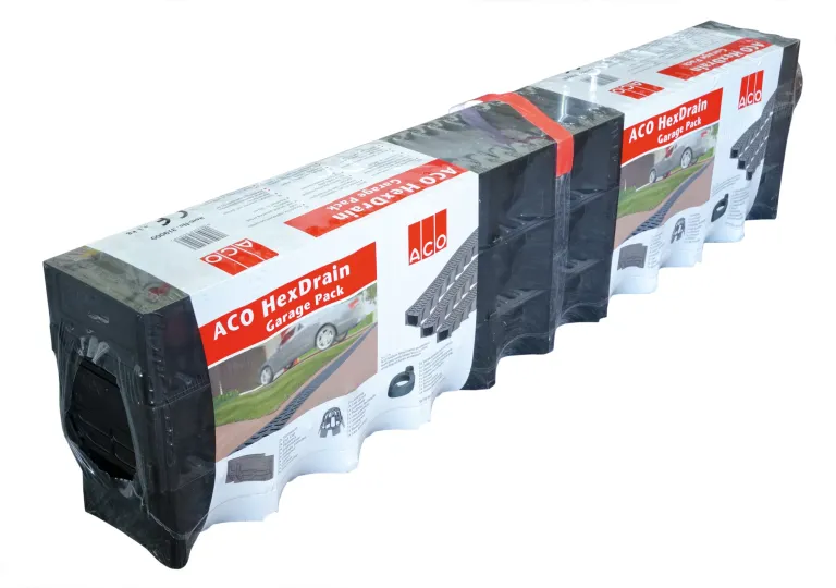 De Garagepack van ACO House&Garden bevat 3 gootelementen inclusief toebehoren. Deze kun je plaatsen voor de garagedeur, maar ook gebruiken als eenvoudige set voor in de tuin.