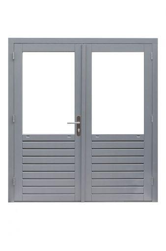 1017095 Hardhouten dubbele 1-ruits deur Prestige met dubbelglas, 202 x 221 cm, grijs gegrond.