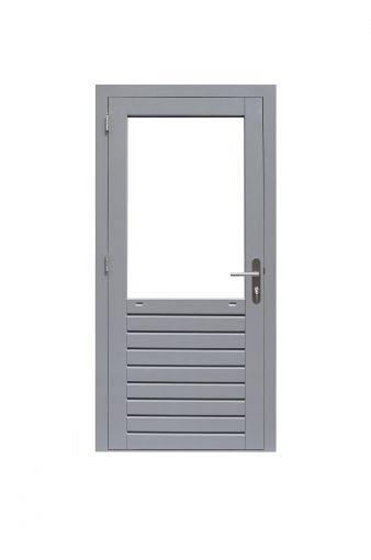 1017093 Hardhouten enkele 1-ruits deur Prestige met dubbelglas, rechtsdraaiend, 109 x 221 cm, grijs