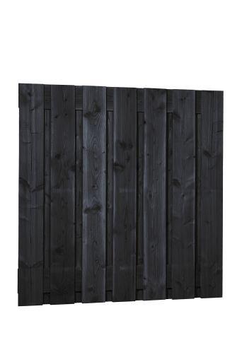 W08089 Douglas fijnbezaagd plankenscherm 15-planks 19 mm, 180 x 180 cm, zwart gedompeld.