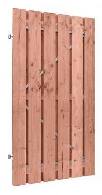 Douglas fijnbezaagde plankendeur op verstelbaar stalen frame. 100x195 cm, planken 1,5x14 cm. Onbehandeld. RVS geschroefd.